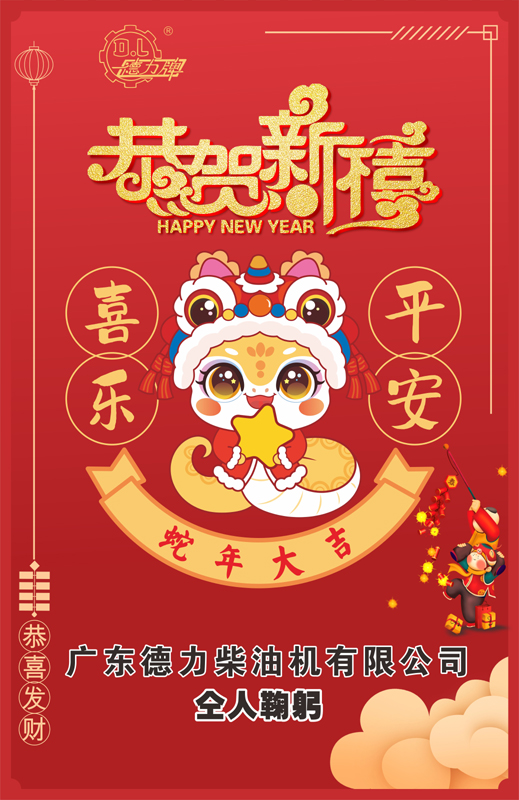 值此新春佳節來臨之際,德力柴油機公司全體仝仁恭祝社會各界人士在新的一年里財源廣進、萬事勝意、出入平安、家庭幸福!